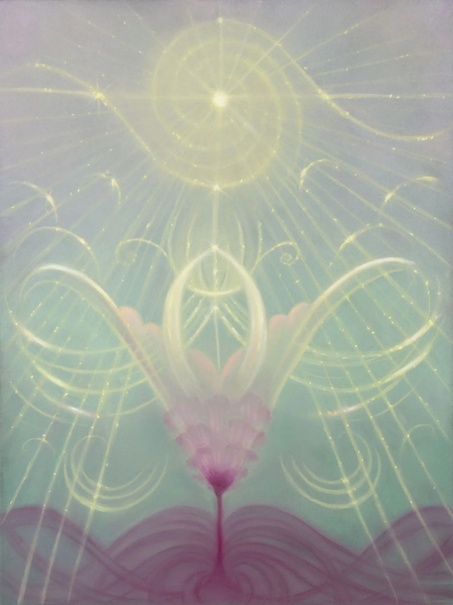 Each piece is also an energetic reminder of the presence of God or the universe within every one of us. I hope viewers feel guided, protected, and supported by something greater as they immerse themselves in the work. My intention is for my art to serve as a sanctuary or an invitation to return home to themselves. To remember their natural calm, and to trust that they are always held, even in moments of uncertainty.