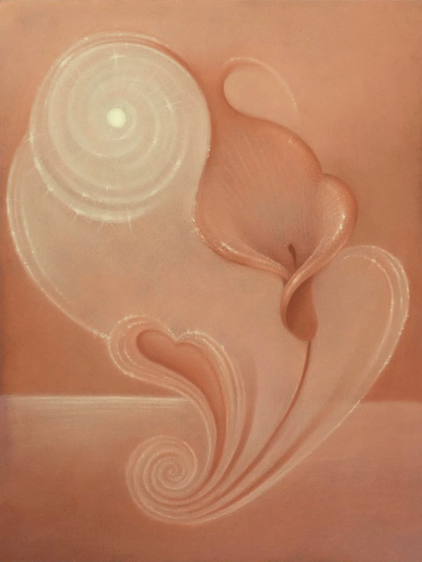 Radiant Bloom was the first piece of Helena’s that I saw, and the one that made me pause. There’s an immediate warmth to it, paired with a sense of intrigue. The forms seem to open outward, like something gently unfolding, while the backdrop spirals in the other direction. To me, it feels as though a hand is softly pulling back a curtain, revealing a vast, swirling space that exists just beyond what we usually see.