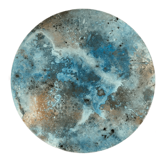 Rosannagh Scarlet Esson’s art is the result of symbolic mixing and interacting of materials. She artfully oxidizes metal, exposes painted canvases to rain and flooding water, and adds texture with salt and ash, among other things. Rosannagh’s inspiration lies in her knowledge and beliefs about ecology, wilderness, and climate change. Using her artistic method of choice, she explores the human relationship to nature and the transformative effects of the elements.