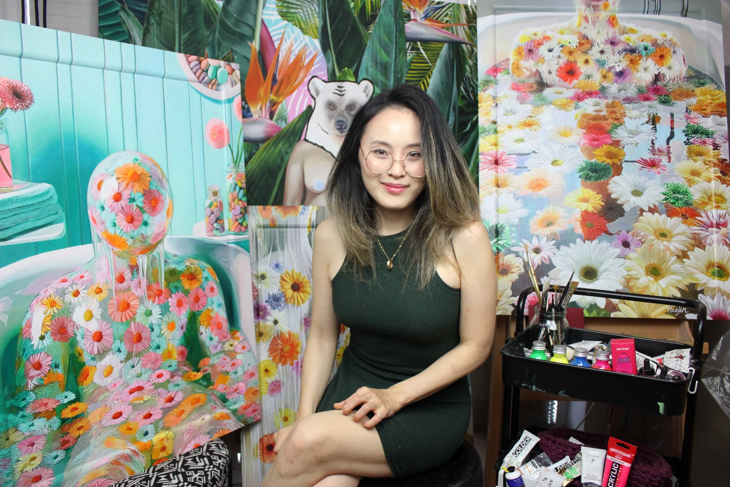 This month, we’re excited to introduce Haejin Yoo, a Korean-born artist who was raised in Australia. Her surreal, symbolic paintings explore identity, introspection, and the fluid nature of the self.
